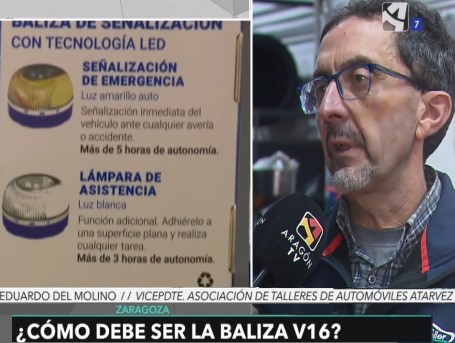 Entrevista a Eduardo del Molino, vicepresidente de Atarvez, en el programa Conexión Aragón, donde explica las características de las balizas V16 que sustituirán a los triángulos de señalización de avería.